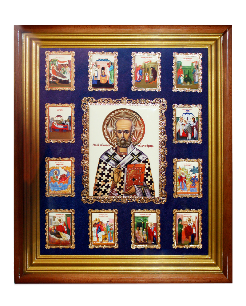- Икона настенная латунная - святитель Николай Чудотворец с житием. 2.14.0156лп