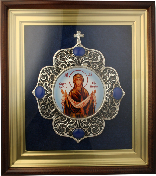 - Икона настенная в серебре с образом Богородицы Покров 2.14.0103л