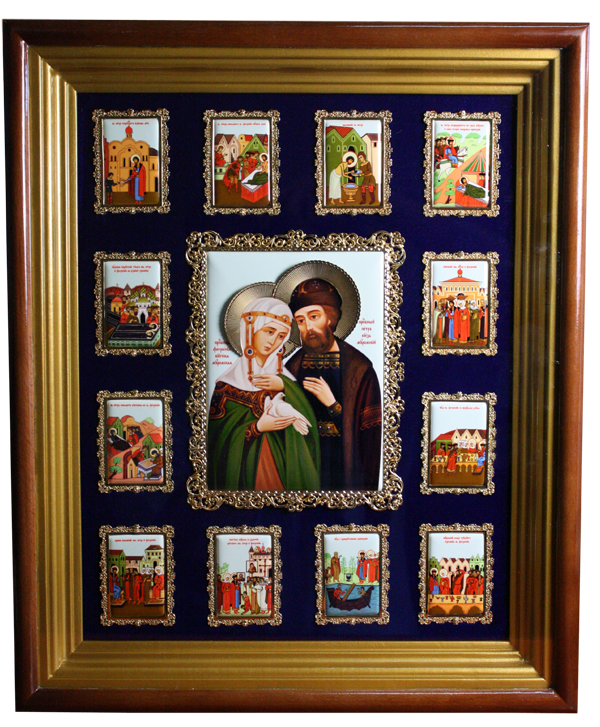 - Настенная икона святых Благоверных князей Петра и Февронии с житийными клеймами. 2.14.0143лп-64