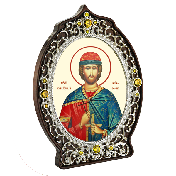 Икона настольная в серебре - Святой Благоверный князь Борис.в магазине Благолепие Богослужения
