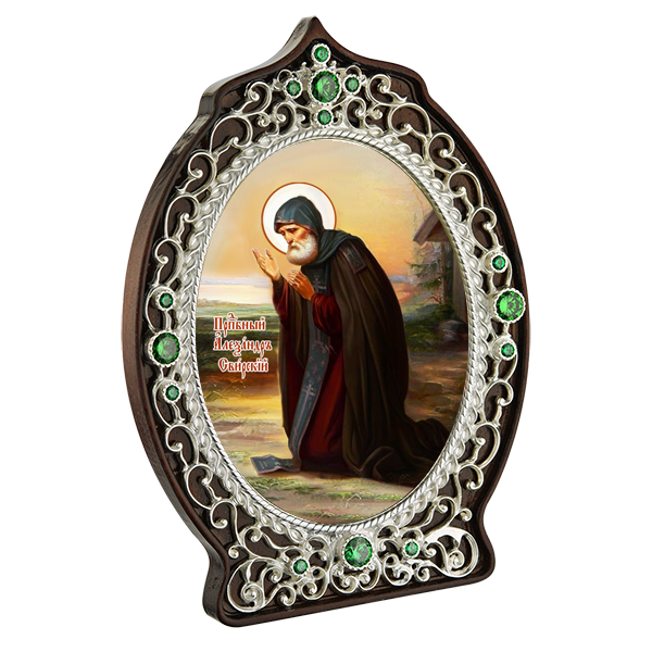 - Икона настольная в серебре - Святой преподобный Александр Свирский. 2.78.0930л