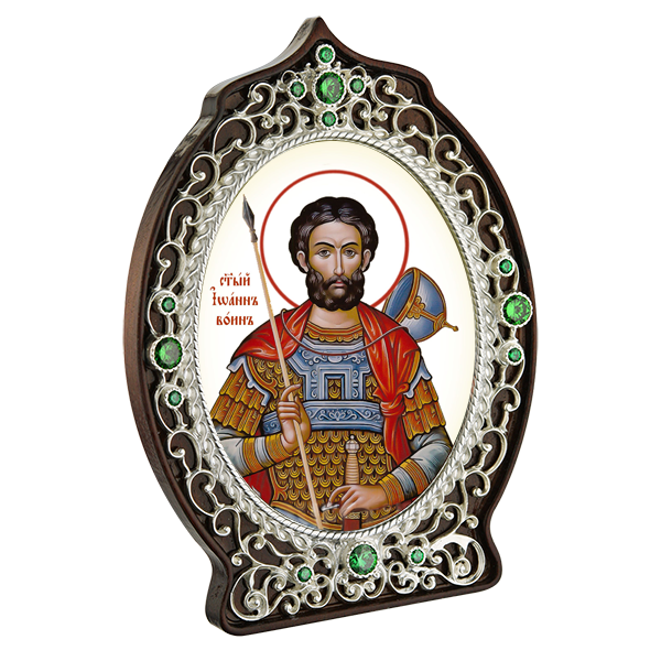 - Икона настольная, в серебре - Святой великомученик Иоанн Воин. 2.78.0961л