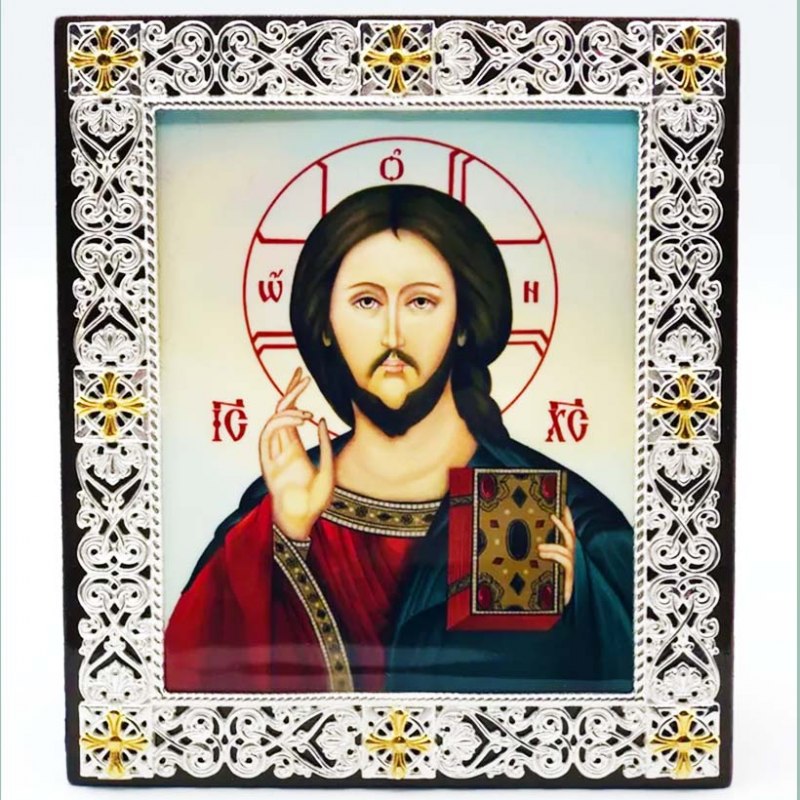 - Икона настольнаялатунная на дереве Спаситель 2.78.02907л