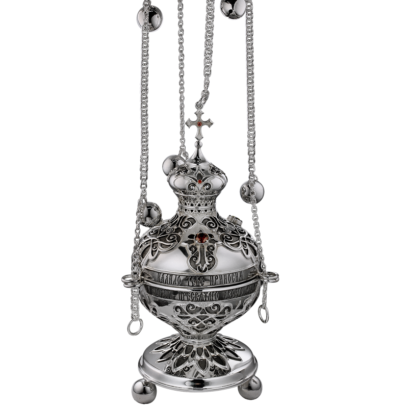 - Кадило латунное с красными камнями в серебрении 2.7.0387л