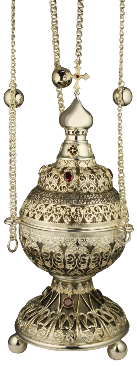 - Кадило латунное с красными камнями в серебрении 2.7.0672л