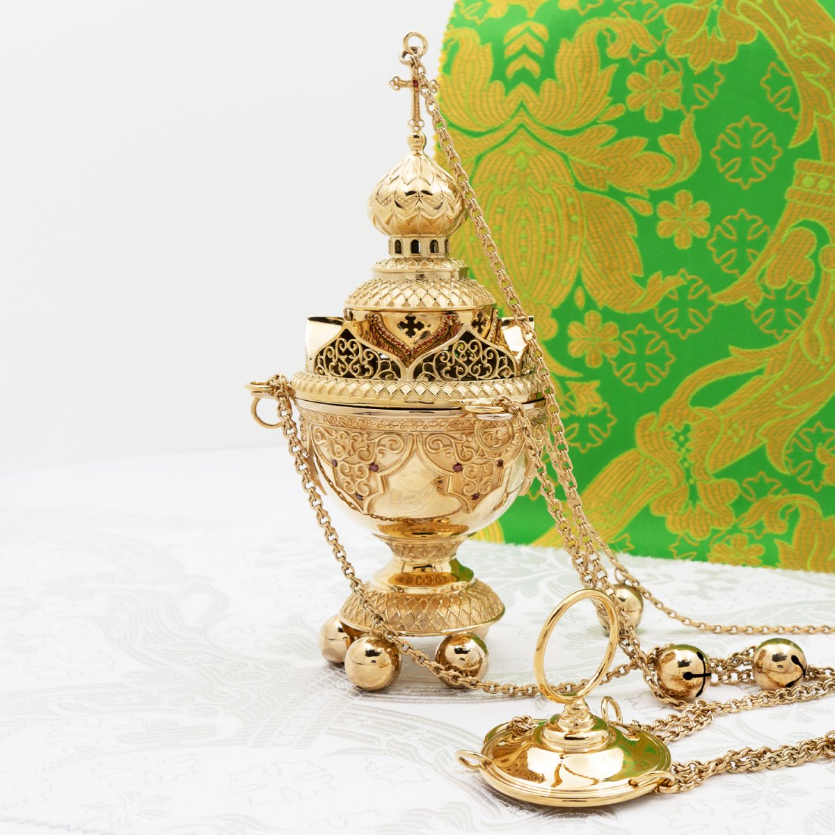- Кадило латунное с красными камнями в позолоте 2.7.1129лп