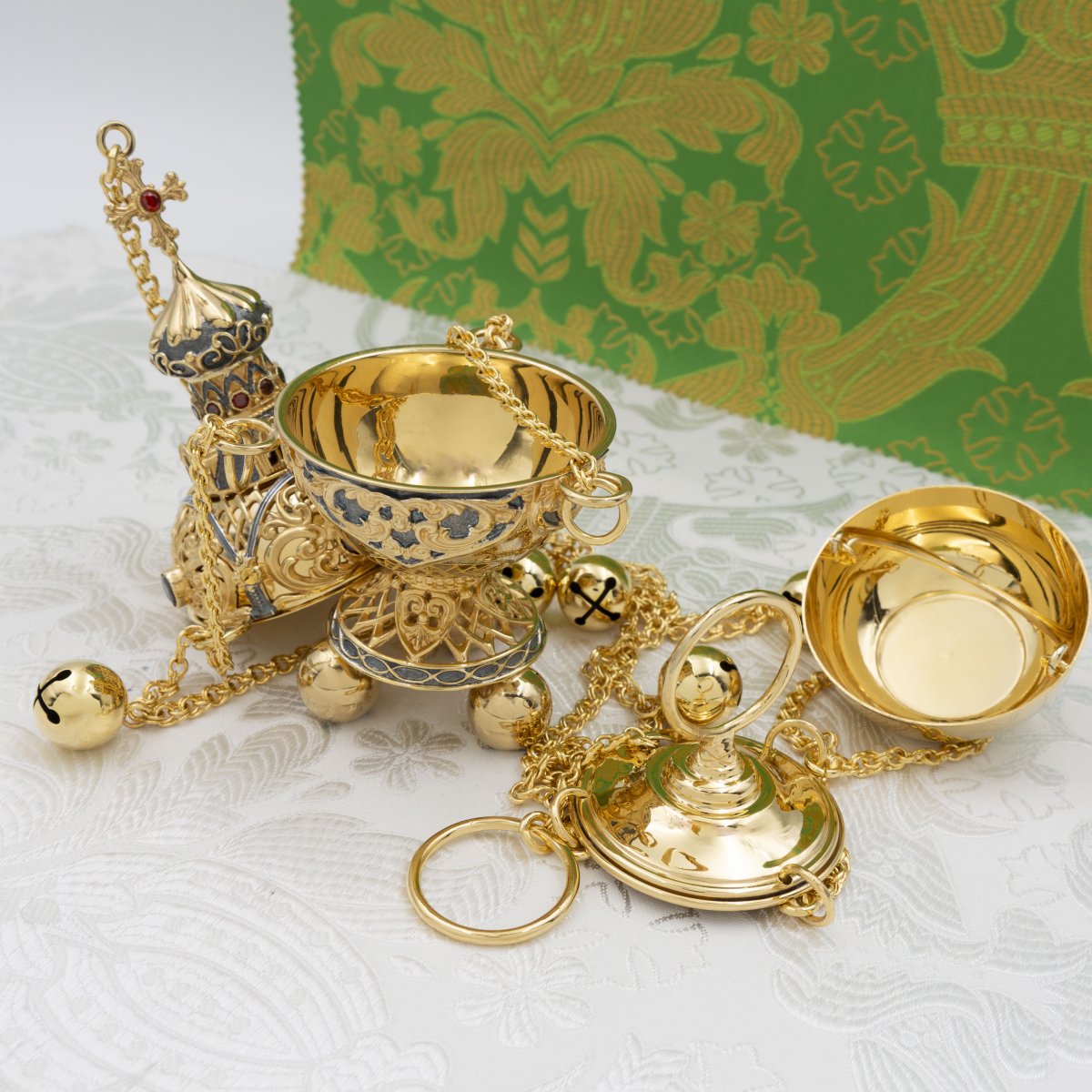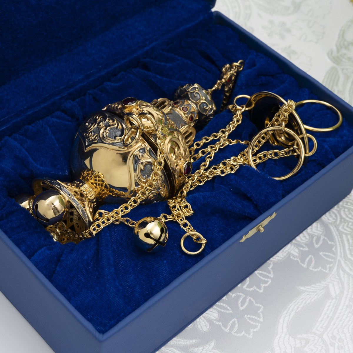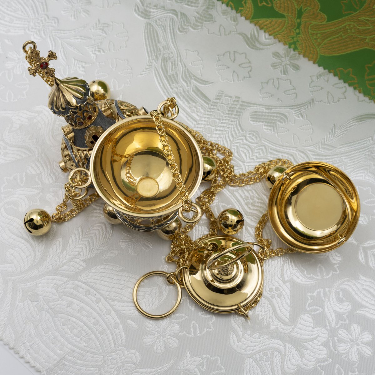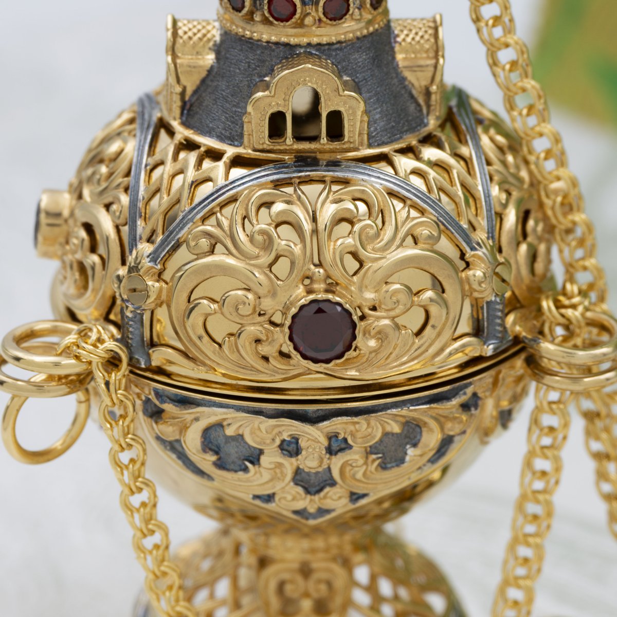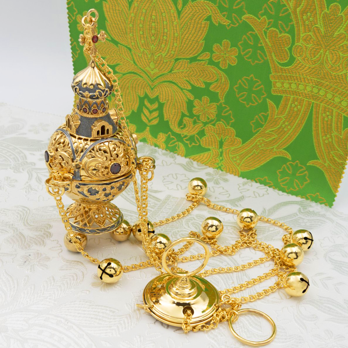 - Кадило латунное с красными камнями в позолоте 2.7.1163лпр