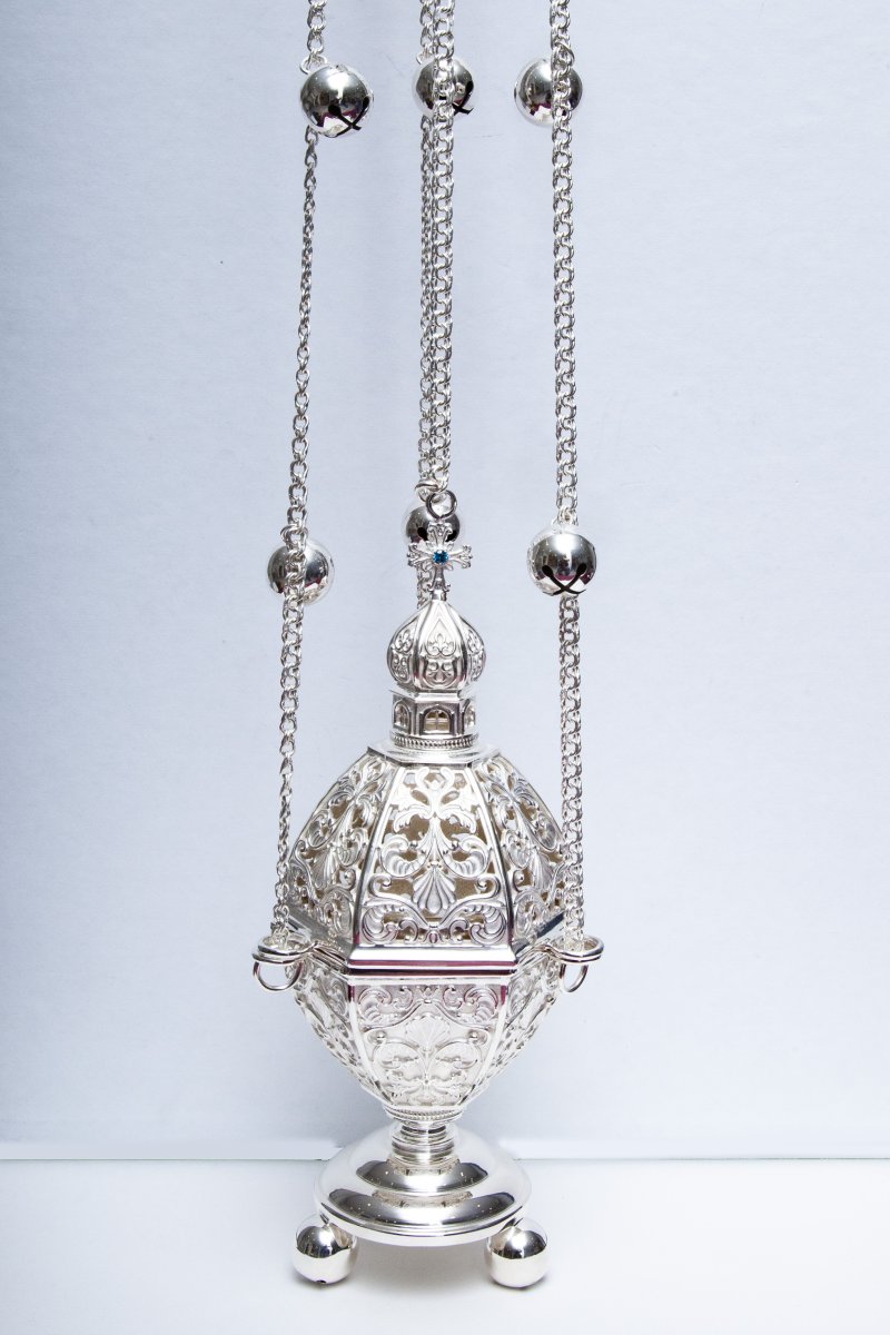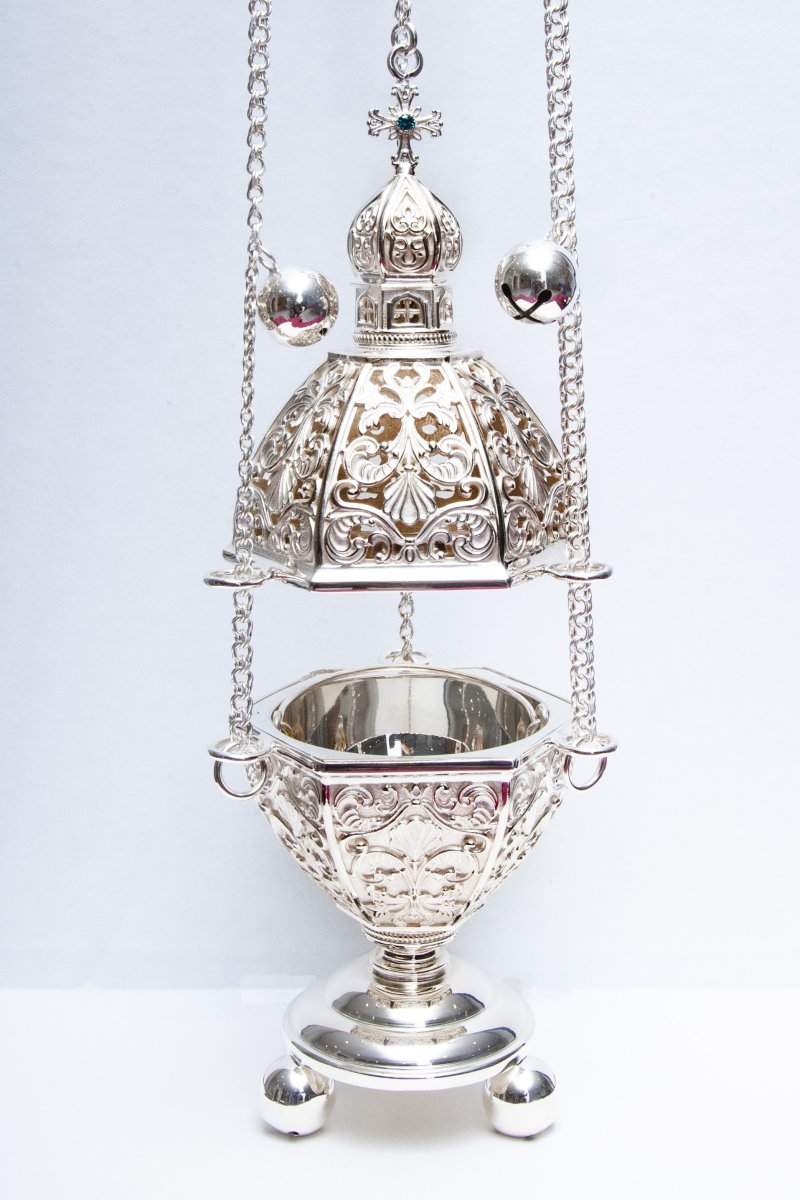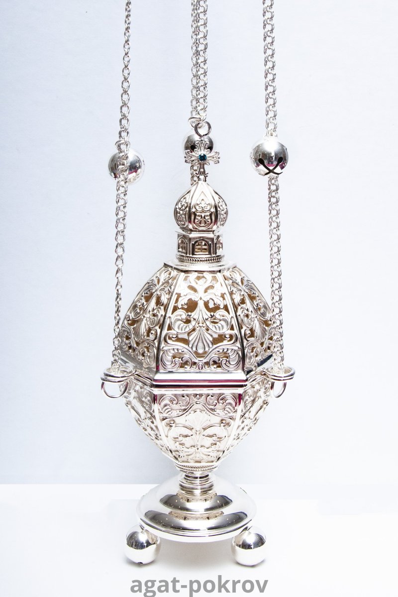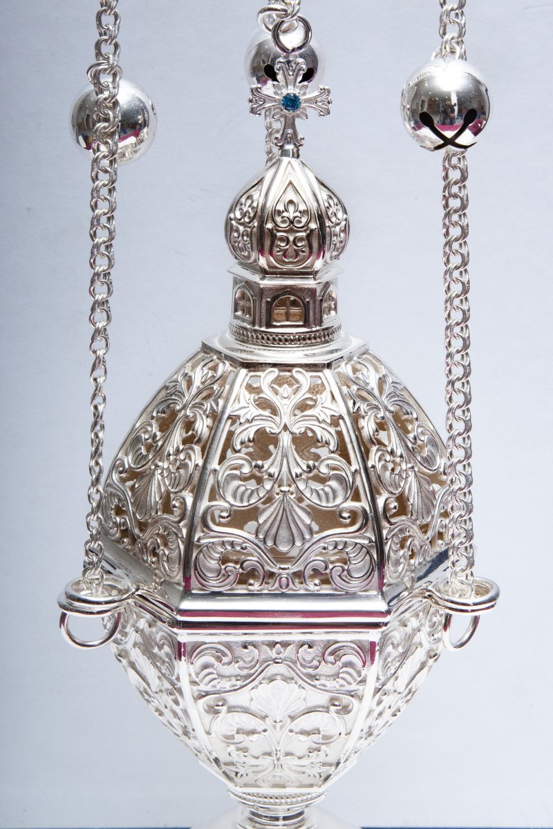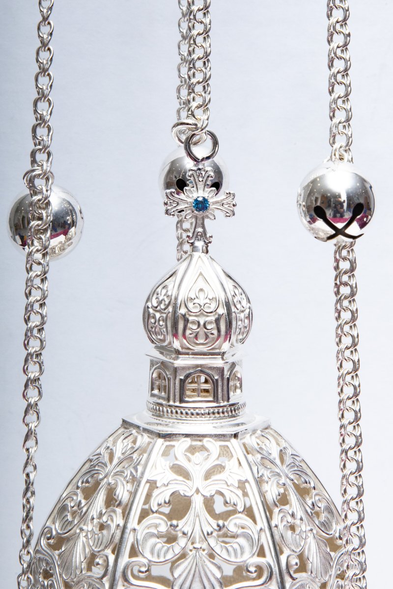 Кадило изготовлено из ювелирного сплава, покрытого серебрением гальваническим методом. Такое покрытие продлевает срок службы изделия, защищает от внешних неблагоприятных воздействий. Кадило продается в фирменной упаковке из экокожи с бархатным ложементом.