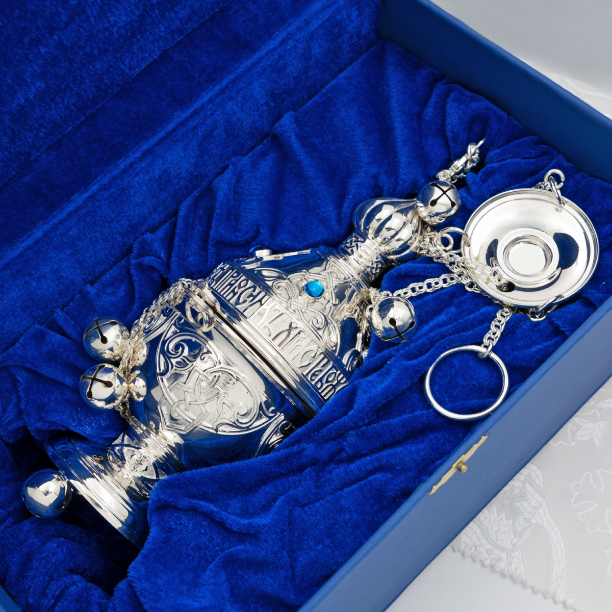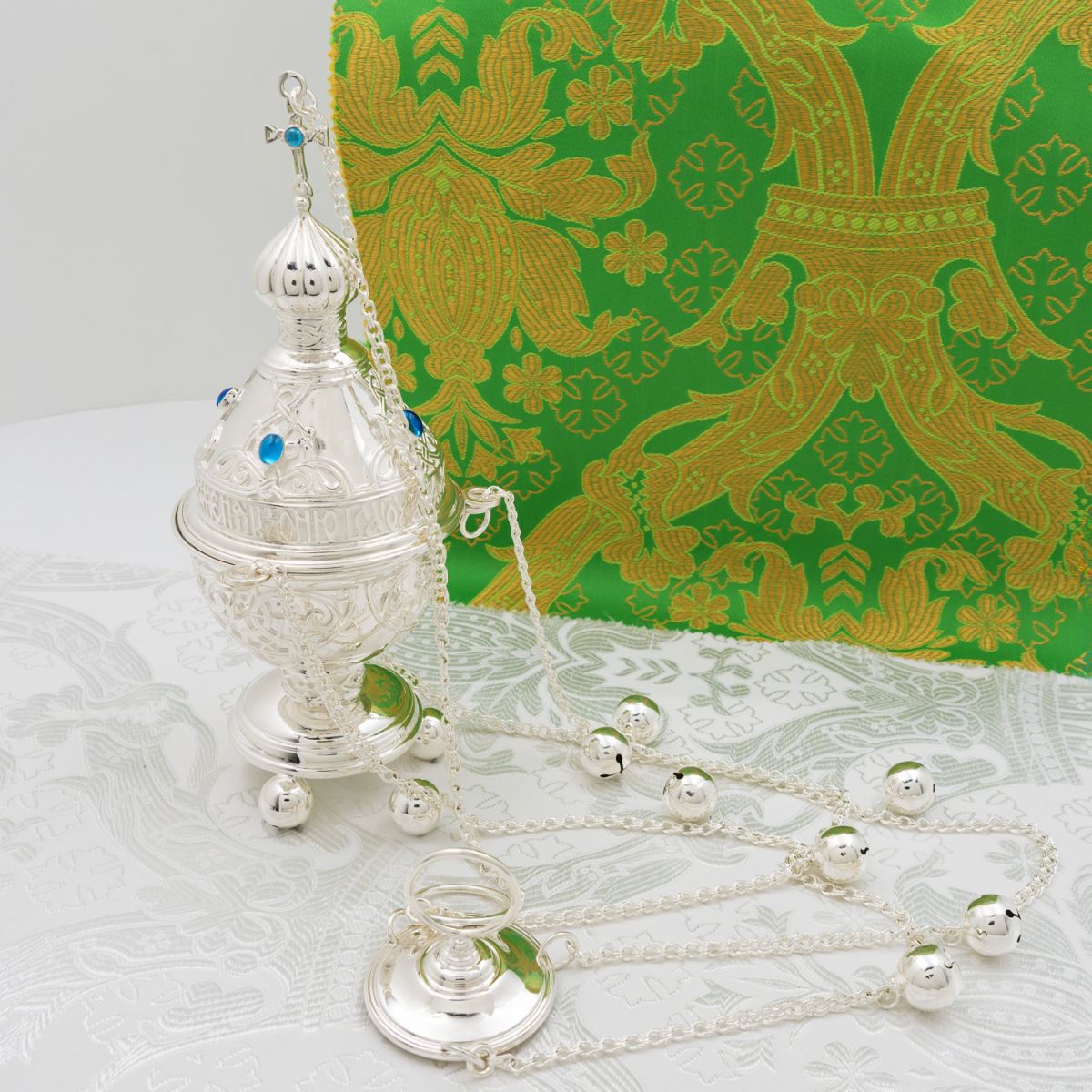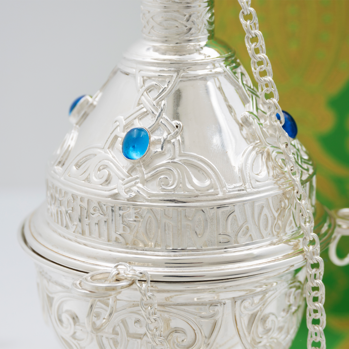 - Кадило латунное с голубыми камнями в серебрении 2.7.2618л