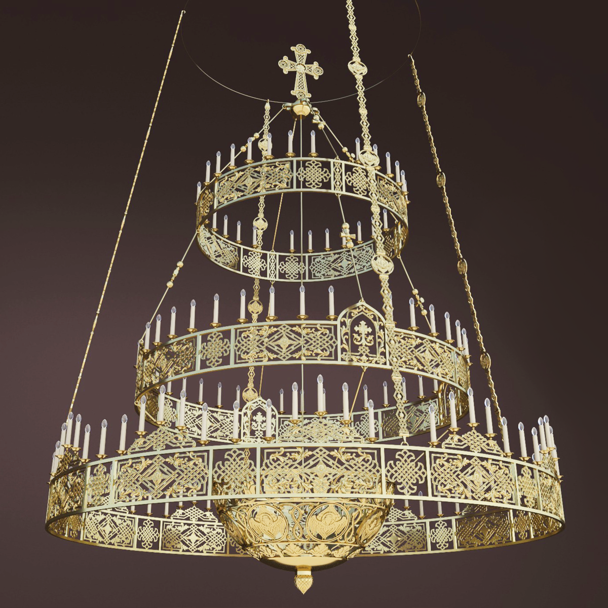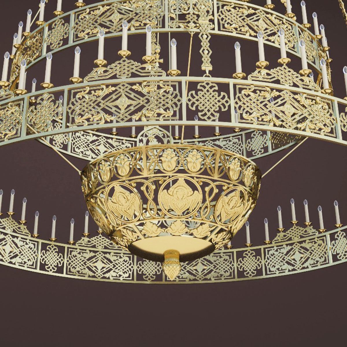 Данный хорос оснащён свечами по диаметру каждого яруса. Для изготовления данного хороса используется латунь и алюминий, сверху изделие покрыто металлизацией. Состоит из 3 ярусов: нижний ярус - 293 см, средний ярус - 205 см, верхний ярус - 143 см.