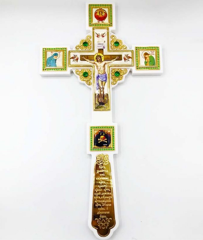 - Крест Напрестольный латунный в позолоте, с латунным принтом на декоративном камне* 2.7.1272лпч