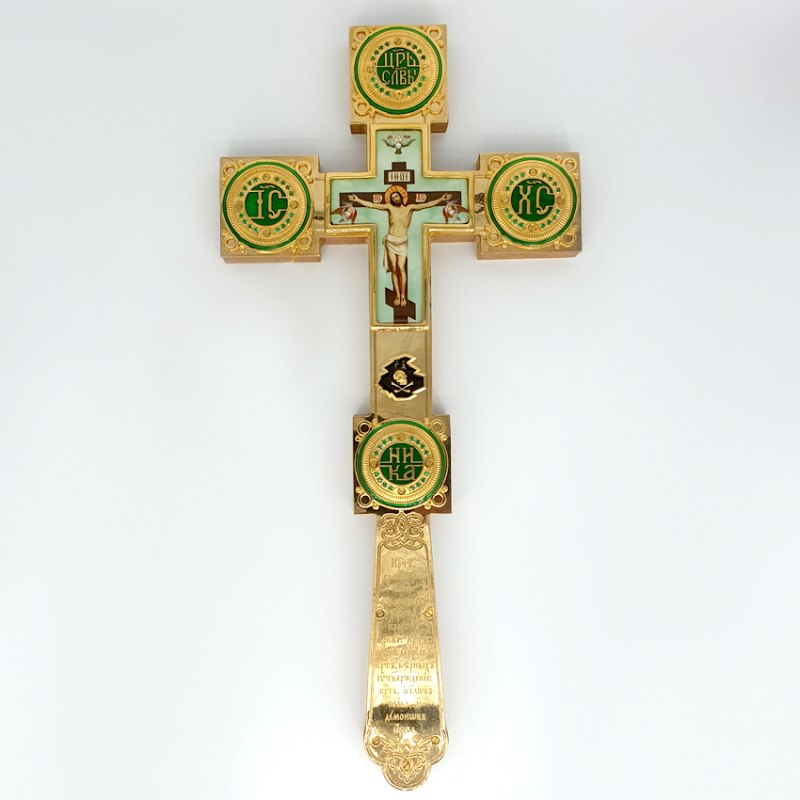 - Крест Напрестольный латунный в позолоте, с эмалью и латунным принтом 2.7.1177лп
