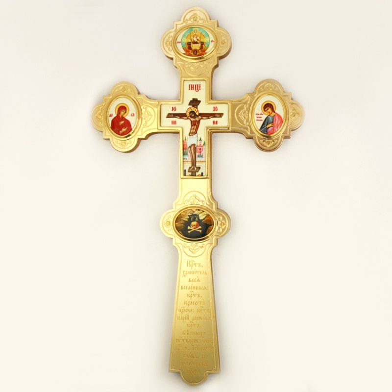 - Крест Напрестольный латунный в позолоте, с латунными принтами 2.7.1219лп
