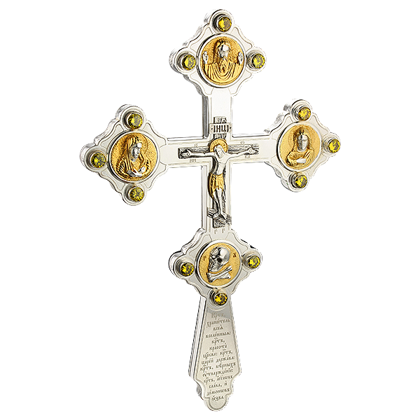 - Крест Напрестольный латунный со вставками, фрагментальной позолотой и оксидированным рас 2.7.0542л