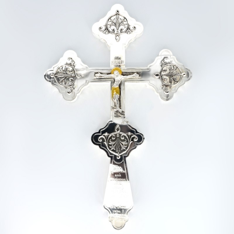 - Крест Напрестольный латунный с фрагментальной позолотой и оксидированным рас 2.7.0541л
