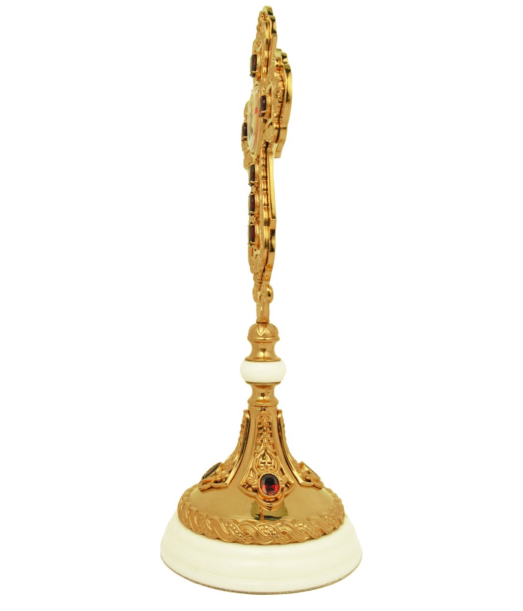 - Крест латунный в позолоте со вставками, принтом на подставке из декор.камня 2.7.1298лпч-2