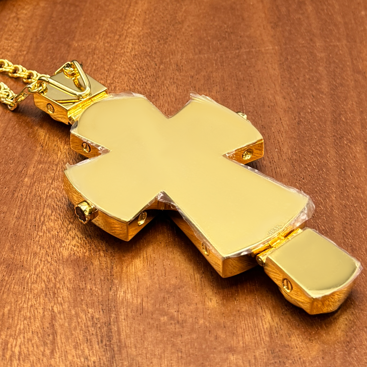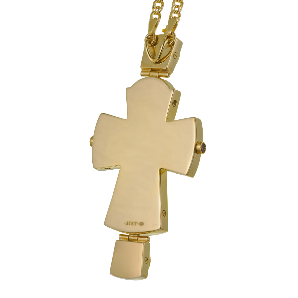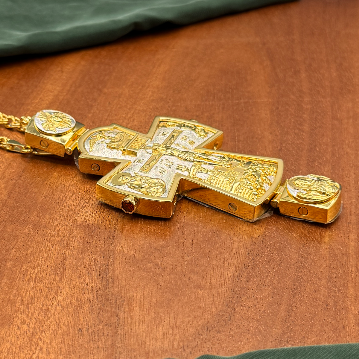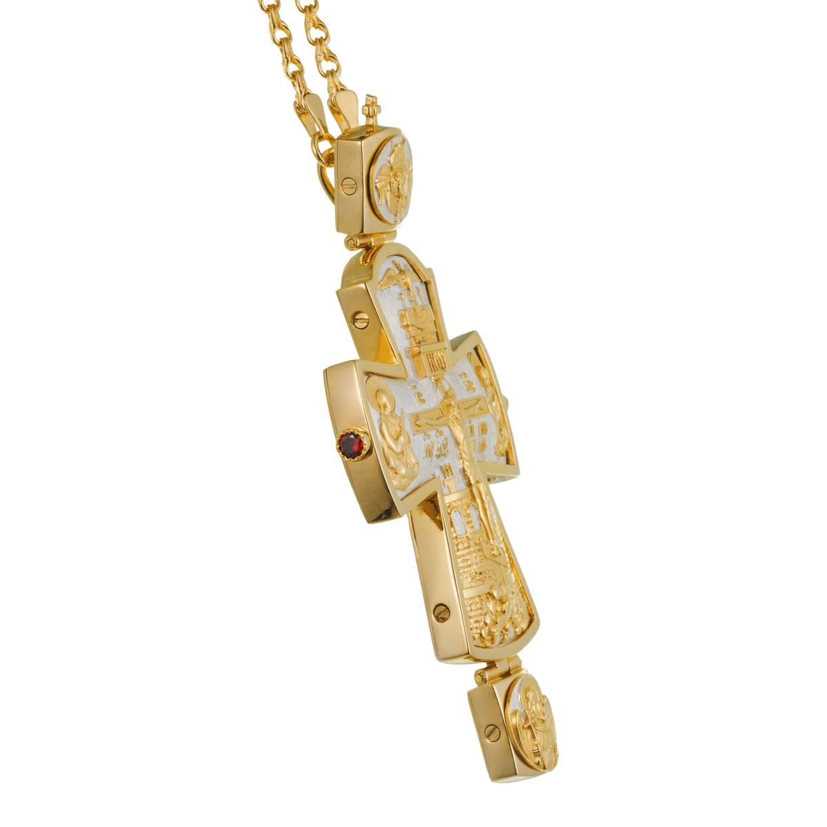 - Крест наперсный с фрагментарной позолотой и фианитами красного цвета 2.10.0408лф/1лп