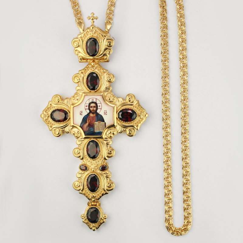 - Крест латунный в позолоте с деколем и с цепью 2.10.0387лп-2/1лп