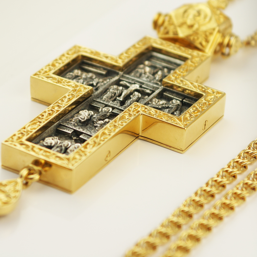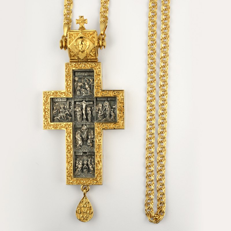 - Крест наперсный в позолоте с украшениями и цепью 2.10.0391лпр/1лп