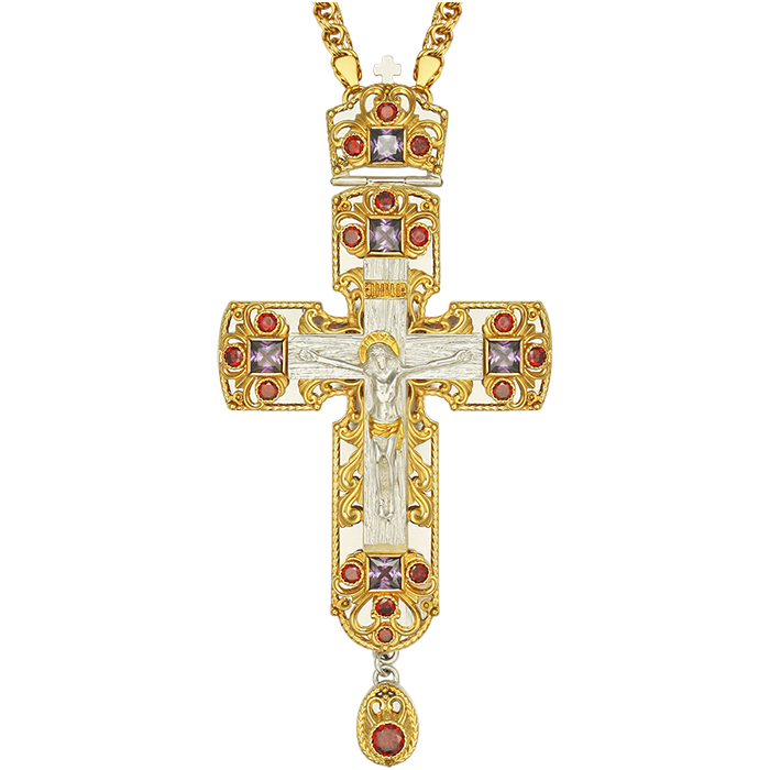 - Крест латунный со вставками и фрагментальной позолотой с цепью 2.10.0152лф/1лп