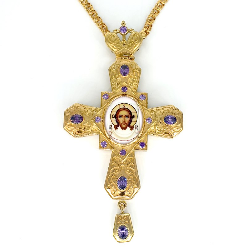 Крест наперсный изготовлен из высококачественного ювелирного сплава с применением ручного труда. Образ Спасителя выполнен по специальной технологии нанесения цветного изображения на металлическую основу, покрыт защитным составом, который предохраняет его от выгорания цвета и различных повреждений. Крест покрыт позолотой при помощи гальваники, что продлевает срок службы металла. Чтобы вернуть первоначальный блеск изделию достаточно просто протереть его мягкой сухой тканью и хранить без доступа влаги. Крест продается в фирменной упаковке из экокожи с бархатным ложементом.