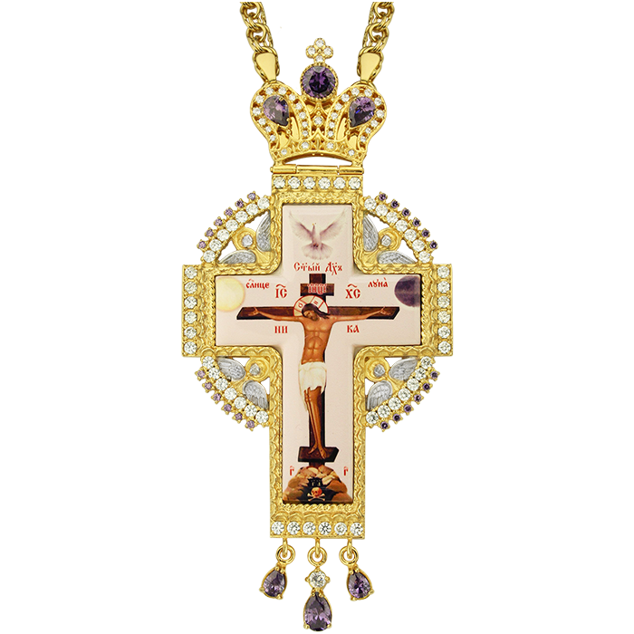 - Крест латунный церковный в позолоте со вставками и цепью 2.10.0080лп-2/1лп