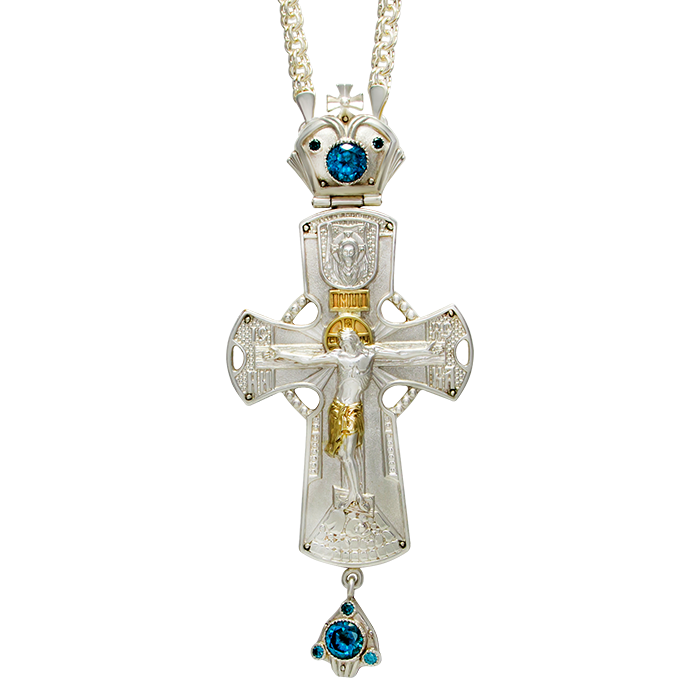 - Крест наперсный латунный со вставками и цепью 2.10.0089л/1л