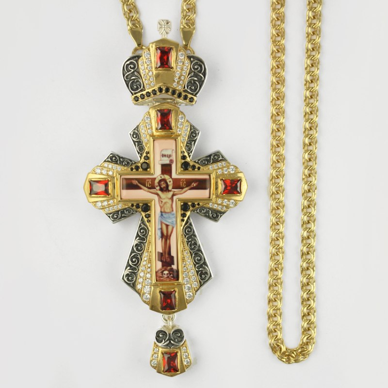 - Крест латунный с фраг. позолотой, деколем и цепью 2.10.0356лф-2/1лп