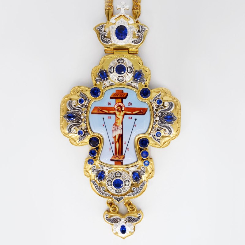- Крест наперсный латунный в позолоте с синими камнями 2.10.0329лп-2/1лп