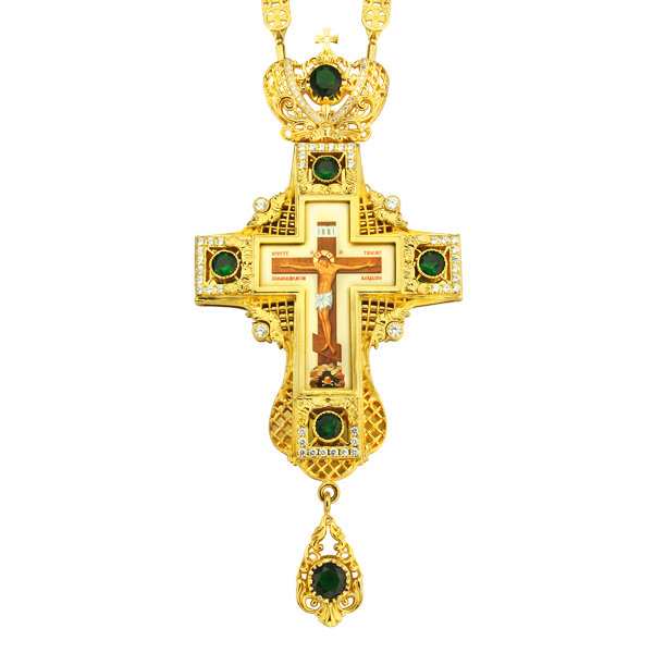 - Крест наперсный латунный в позолоте со вставками и цепью 2.10.0035лп-2/39лп
