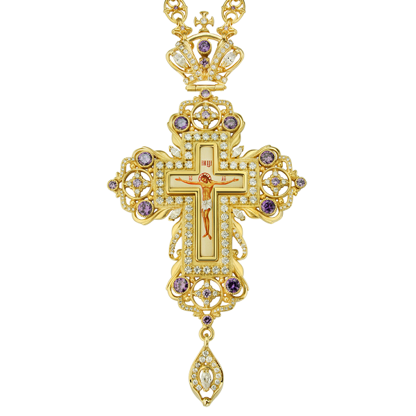 - Крест наперсный латунный в позолоте со вставками и цепью 2.10.0093лп-2/44лп