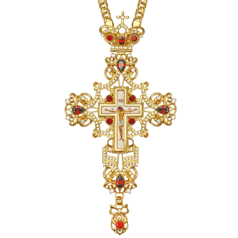 - Крест наперсный латунный со вставками и цепью 2.10.0094лп-2/1лп