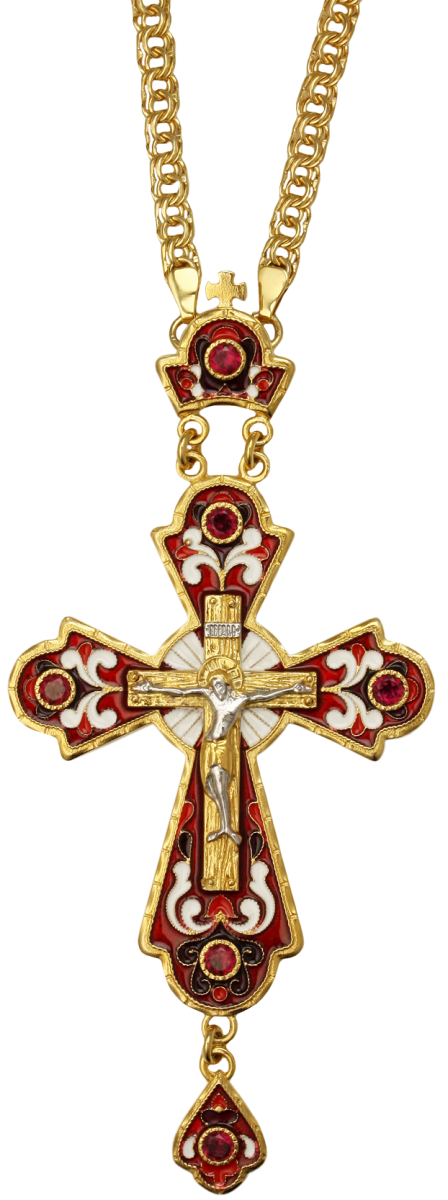 - Крест наперсный в позолоте со вставками, эмалью и цепью 2.10.0145лп/1лп