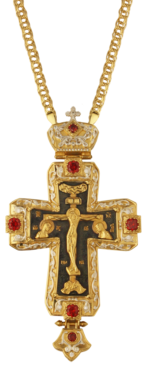 - Крест наперсный в позолоте с украшениями и цепью 2.10.0196лп/1лп