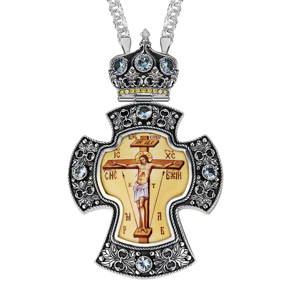 - Крест наперсный латунный со вставками и цепью 2.10.0101л-2/1л
