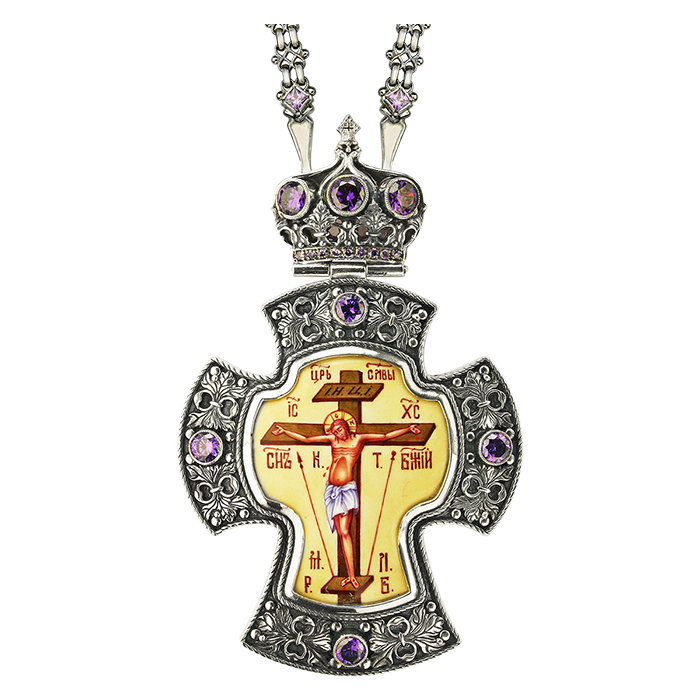 - Крест наперсный латунный со вставками и цепью 2.10.0101лр-2/52лр