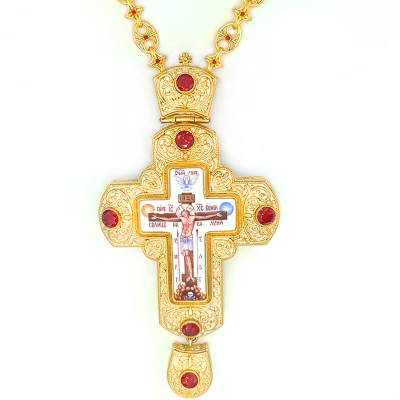 - Крест латунный с фр. позолотой, финифтью и цепью 2.10.0204лф-1/44лп