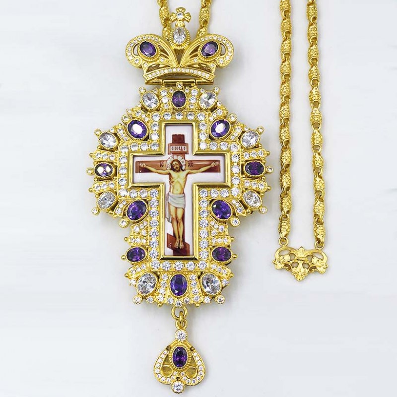 - Крест наперсный с украшениями и цепью 2.10.0216лп-2/73лп