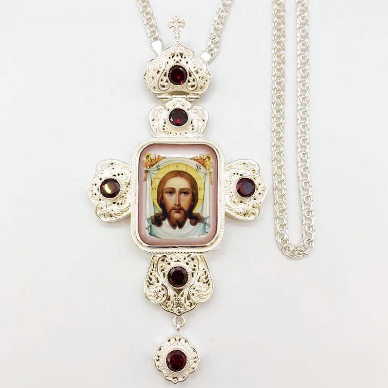 Крест наперсный изготовлен из высококачественного ювелирного сплава с применением ручного труда. Образ Спасителя выполнен по специальной технологии нанесения цветного изображения на металлическую основу, покрыт защитным составом, который предохраняет его от выгорания цвета и различных повреждений. Крест покрыт серебрением при помощи гальваники, что продлевает срок службы металла. Крест декорирован крупными фианитами. Чтобы вернуть первоначальный блеск изделию достаточно просто протереть его мягкой сухой тканью и хранить без доступа влаги. Крест продается в упаковке из экокожи.