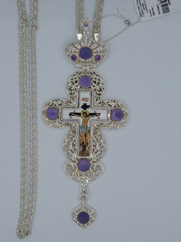 - Крест латунный со вставками (кабашон) и цепью 2.10.0151л-2/1л