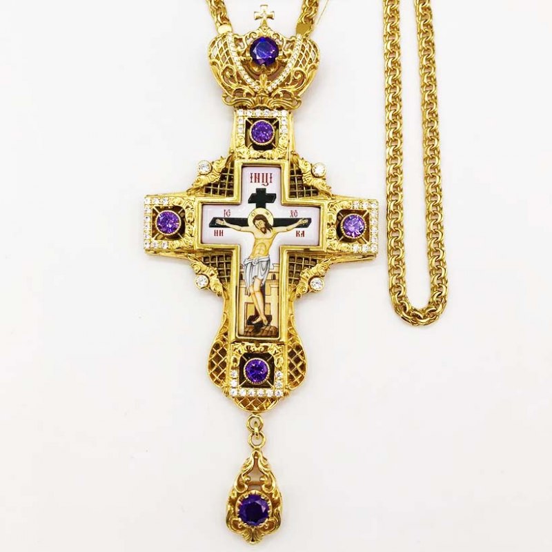 - Крест наперсный латунный в позолоте со вставками и цепью 2.10.0035лп-2/1лп