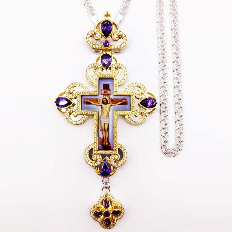 Крест латунный с фрагментальной позолотой и цепью 2.10.0290лф-2/1л