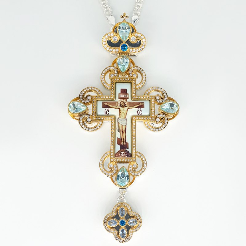 Крест латунный с фрагментальной позолотой и цепью 2.10.0290лф-2/1л