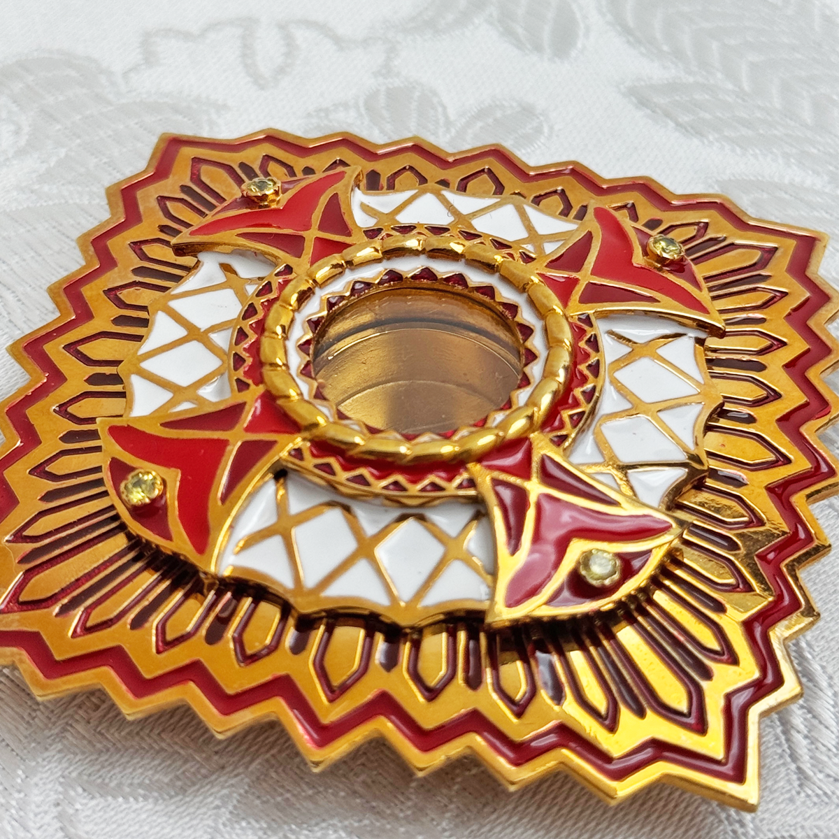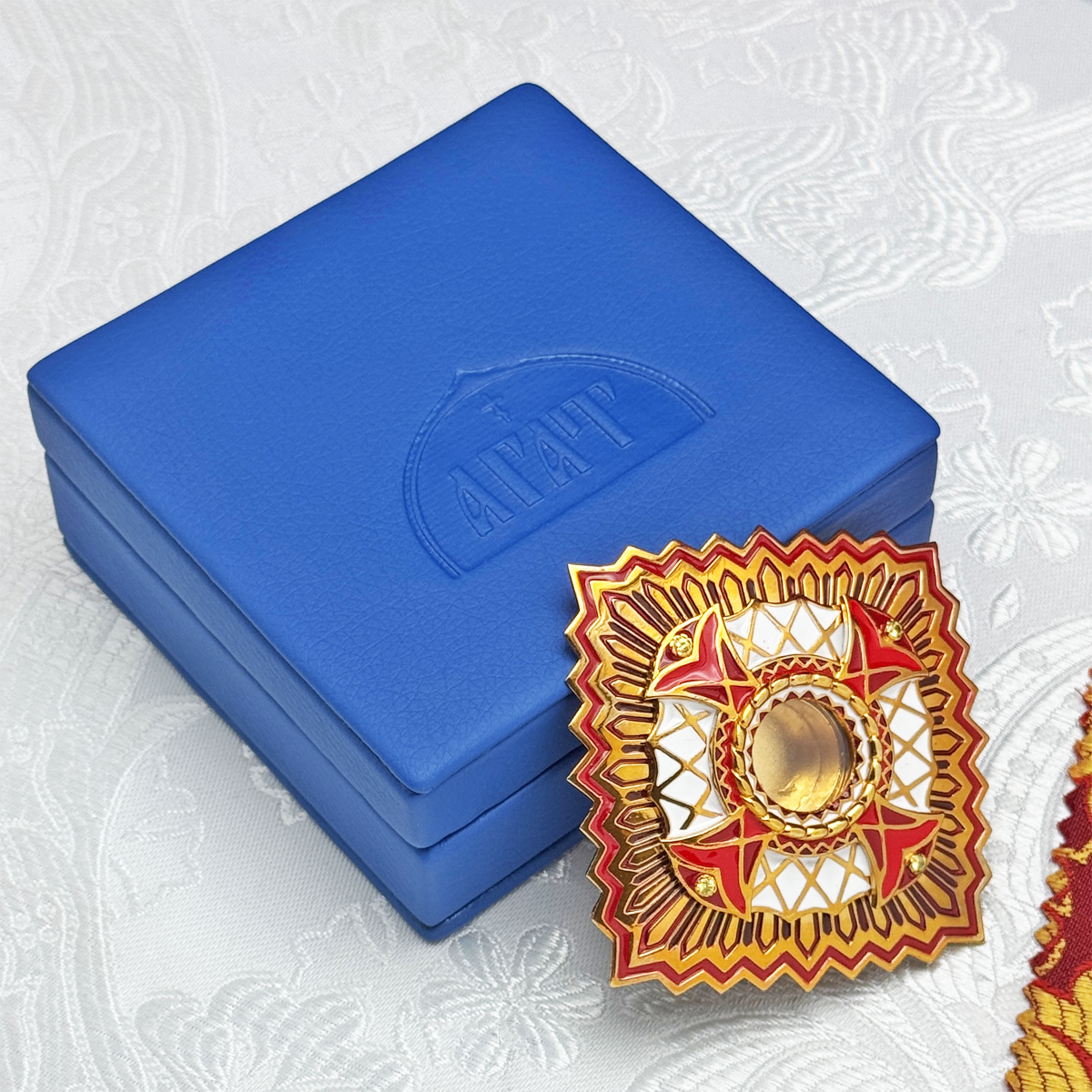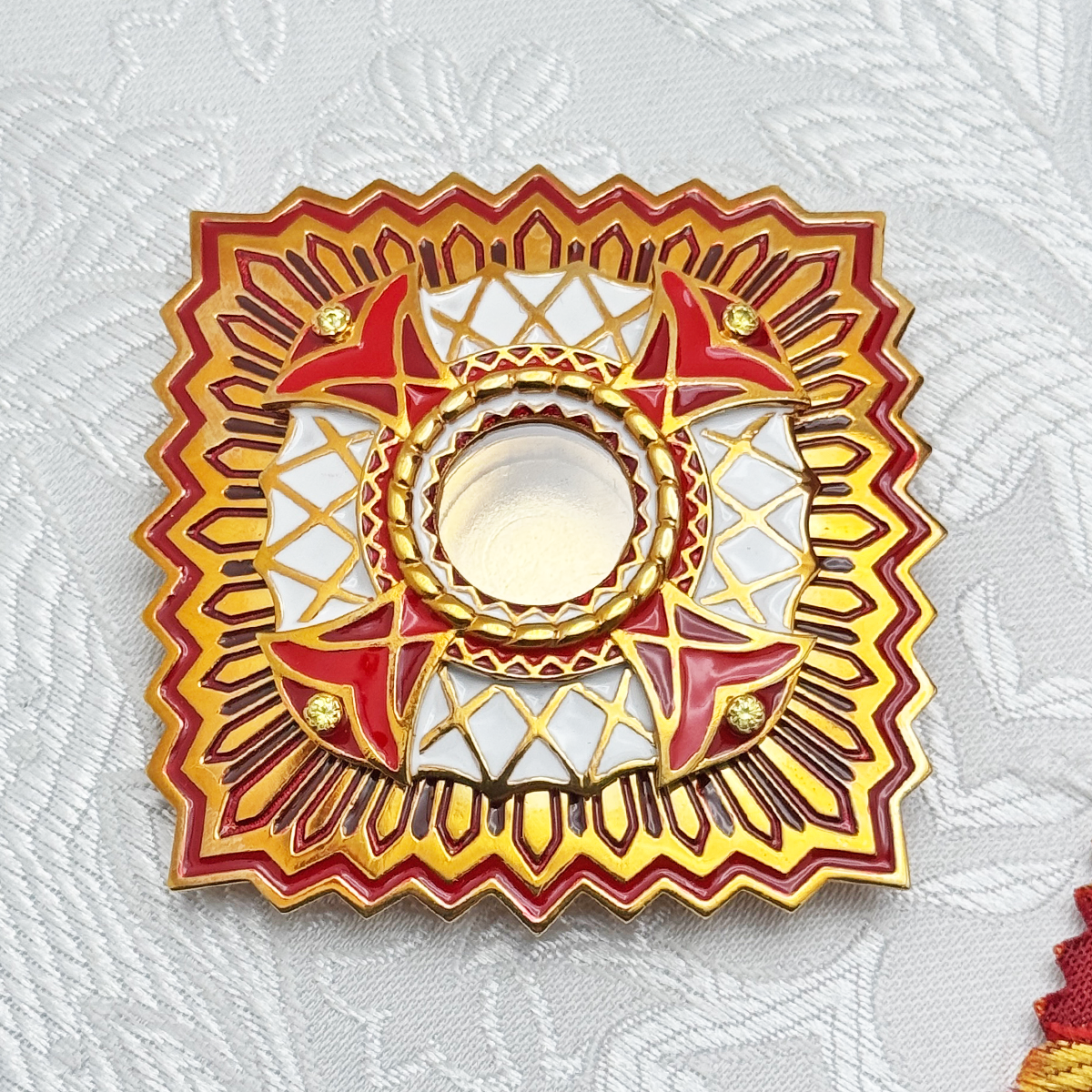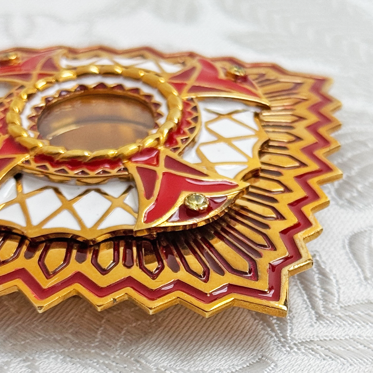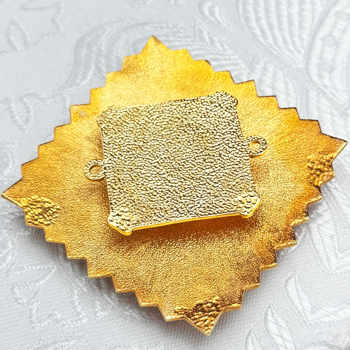 Мощевик латунный изготовлен из высококачественного ювелирного сплава покрытого позолотой гальваническим методом, такое покрытие продлевает срок службы изделия, защищает от внешних неблагоприятных воздействий. Мощевик декорирован вставками из эмали.