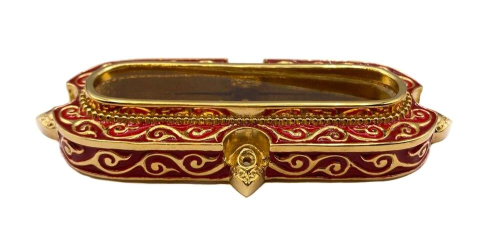 Мощевик изготовлен из высококачественного ювелирного сплава, покрытого позолотой гальваническим методом, такое покрытие продлевает срок службы изделия, защищает от внешних неблагоприятных воздействий. Изделие декорировано красной эмалью.