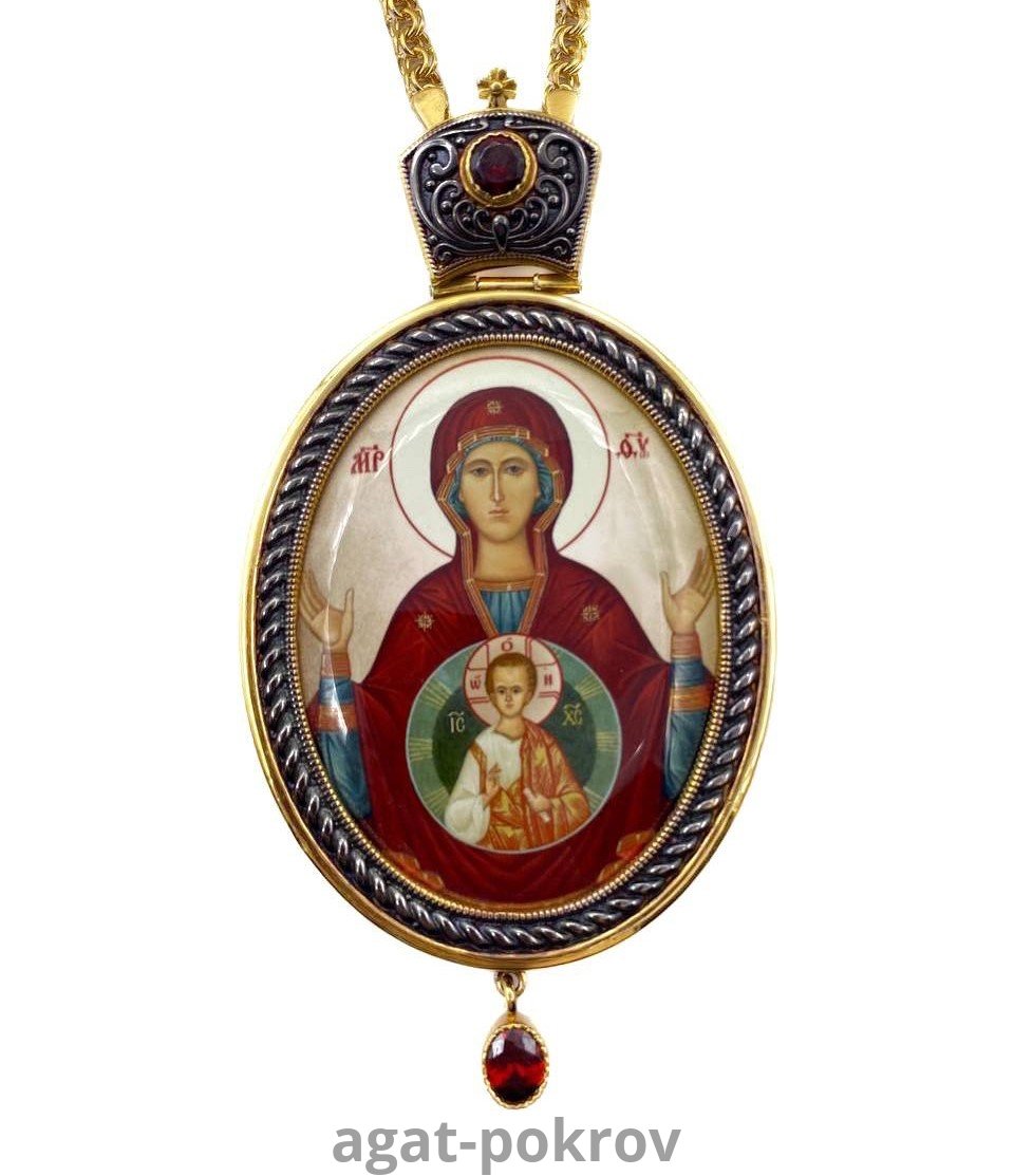 Архиерейская панагия изготовлена из высококачественного ювелирного сплава . Образ на панагии выполнен по специальной технологии нанесения цветного изображения на металлическую основу. Он покрыт защитным составом, который предохраняет его от выгорания цвета и различных повреждений. Панагия продается в презентабельной упаковке из кожвинила с бархатным ложементом.