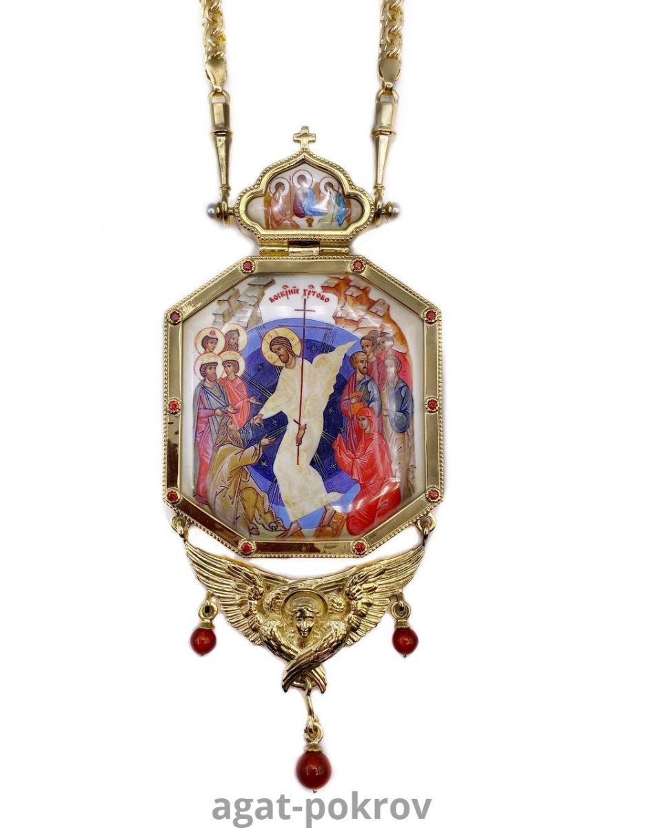 Панагия изготовлена из высококачественного ювелирного сплава, покрытого позолотой гальваническим методом. Такое покрытие продлевает срок службы изделия, защищает от внешних неблагоприятных воздействий. Образ на панагии выполнен по специальной технологии нанесения цветного изображения на металлическую основу. Он покрыт защитным составом, который предохраняет его от выгорания цвета и различных повреждений. Изделие продается в фирменной упаковке из экокожи с бархатным ложементом.