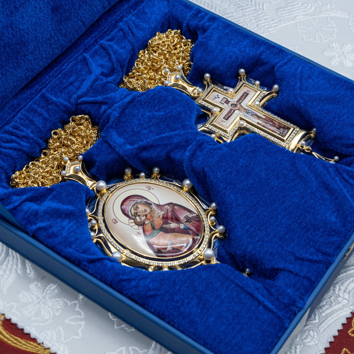 Панагия продается в фирменной упаковке из экокожи с бархатным ложементом. Она удобна в использовании для хранения и транспортировки.