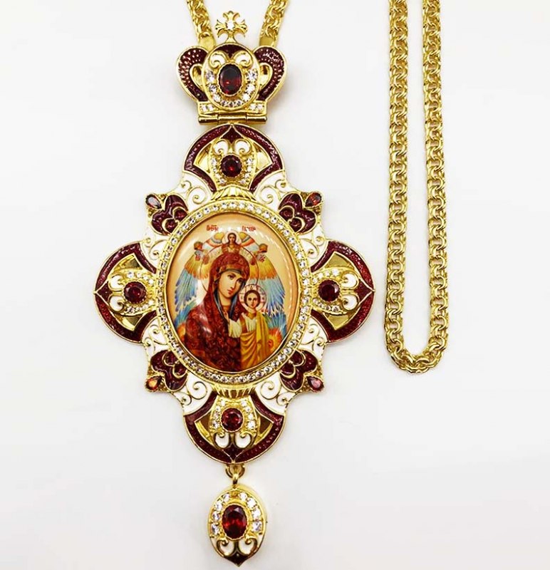 - Панагия латунная в позолоте со вставками, эмалью и цепью
