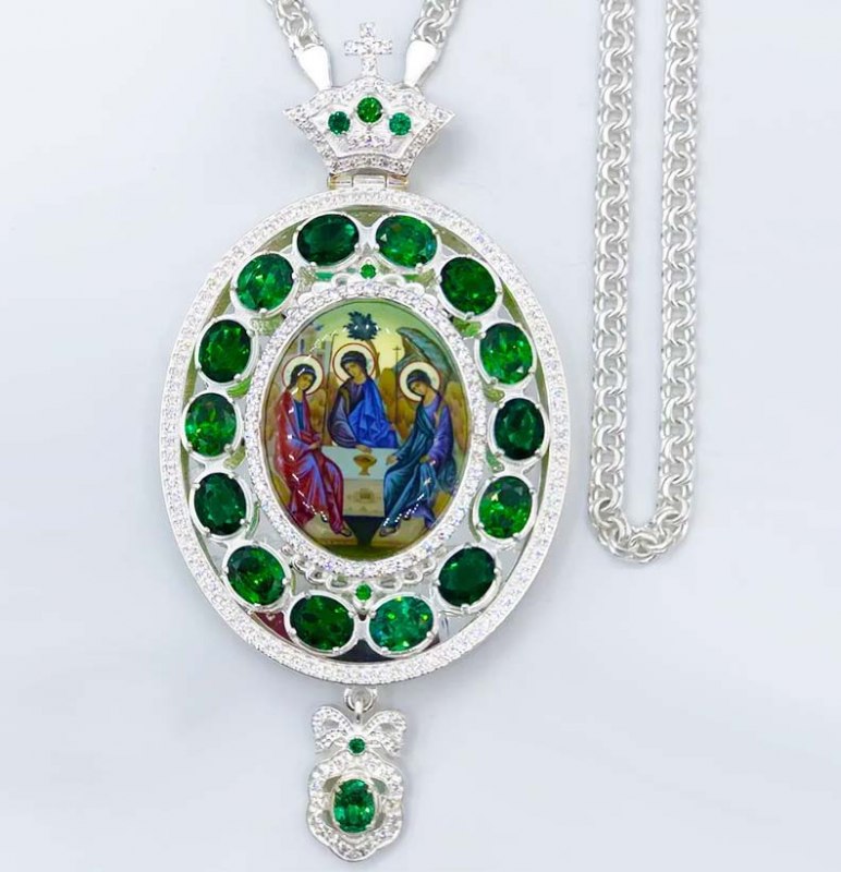 Панагия латунная с принтом и цепью арт.2.7.0201лв магазине Благолепие Богослужения
